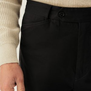 The El Camino Pant is a western-inspired trouser crafted from brushed Japanese cotton twill, built with 1960s-era frogmouth front pockets, waist tab closures, and a split waistband. Modeled after polished rodeo styles, the leg runs slim and straight from a mid-high rise down to a boot-ready opening.