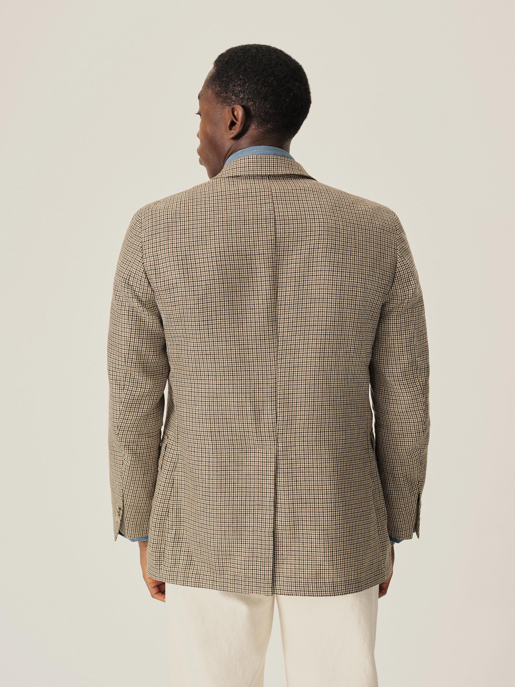Classic Ivy blazer with a darted front, 3-roll-2 lapel, center back vent, and a soft shoulder. Half-lined in Bemberg with full canvas construction. Details include a patch chest pocket, two patch-and-flap waist pockets, three internal welt pockets, and a notch lapel.