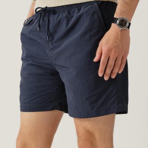 Classic swim shorts are made from lightweight woven nylon using recycled plastic waste found in the ocean. They feature an elastic waistband with an added drawstring for the perfect fit. A small front buttoned pocket and button flapped back pocket help you stow your necessaries in addition to two front slash pockets. 5.5-inch inseam.