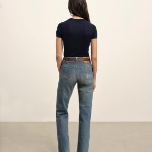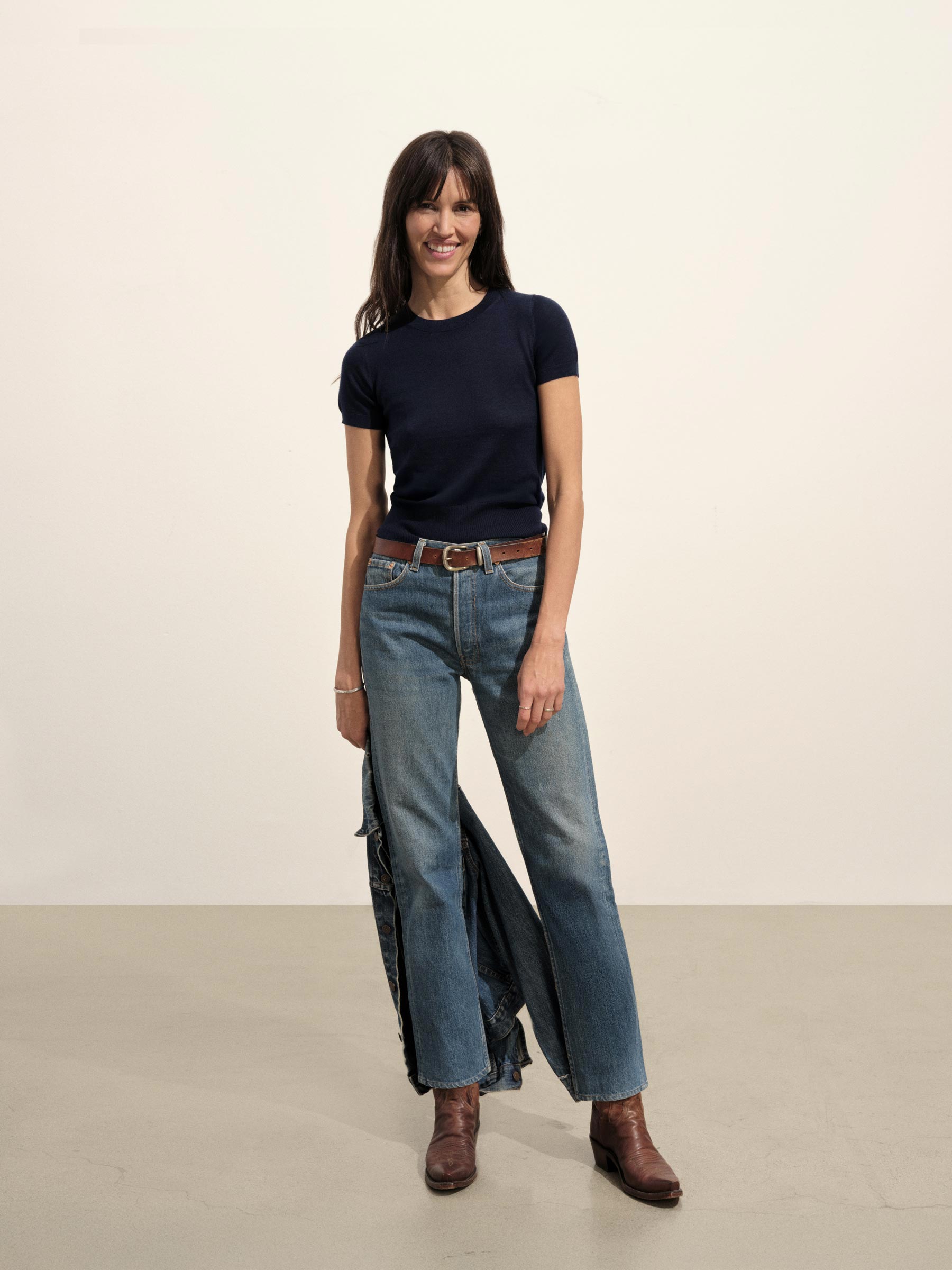Crewneck sweater knit tee with a relaxed, slim fit. Spun from a yarn-dyed blend of merino wool, silk, and cashmere. Garment washed for added softness.