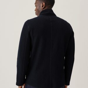 Classic fit chore coat with a slimmer cut through the arms and room in the torso for layering. This 340 GSM felted merino wool has been twice boiled for improved insulation and durability. Details include three patch pockets, real horn buttons, and a notch collar. Constructed with hand-sewn facings and cover-stitching throughout.