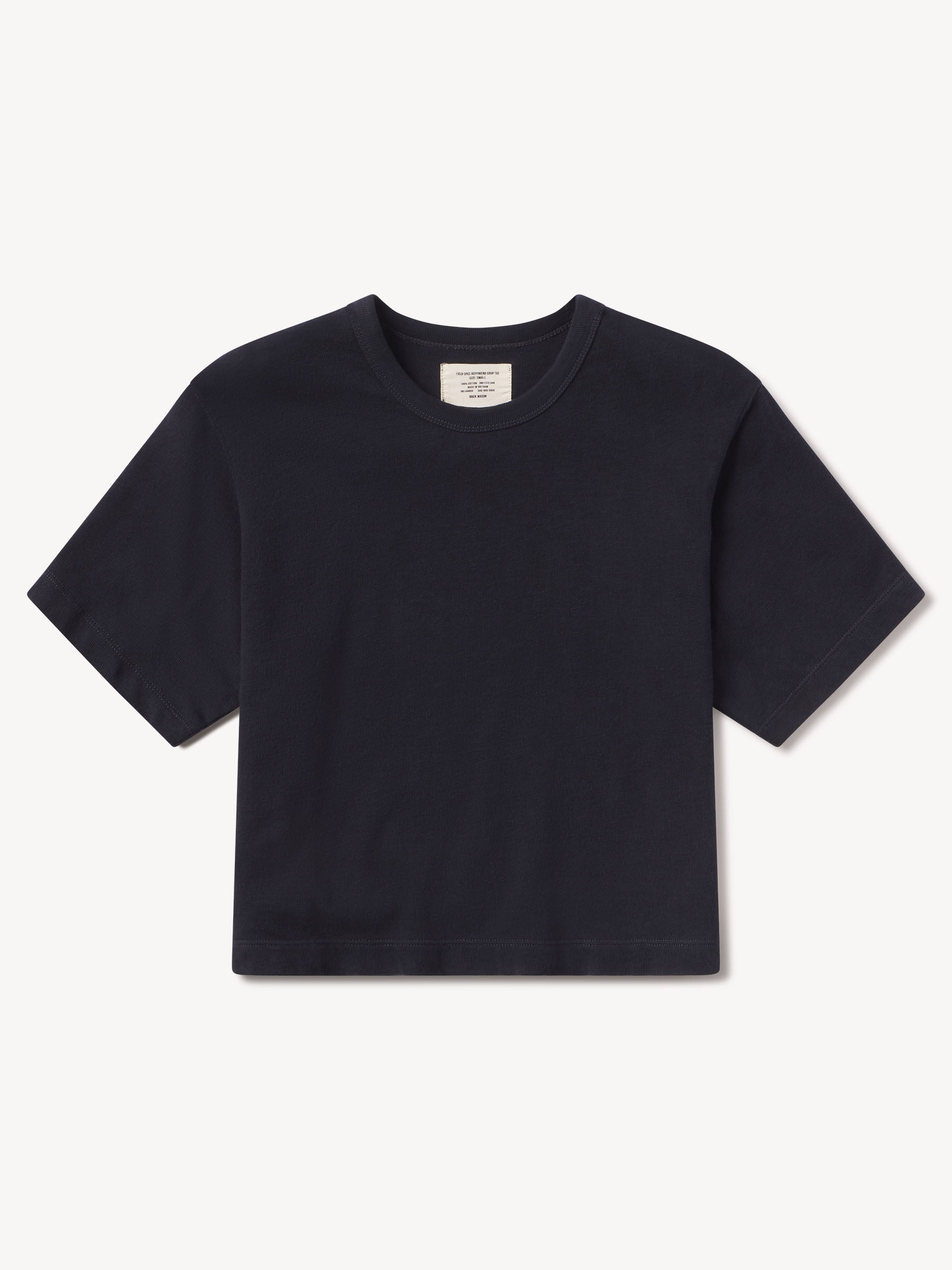 Cut from a heavyweight 310 GSM cotton, this slightly oversized, boxy crewneck tee has a straight hemline that hits right at your natural waist. Double-washed for a soft, smooth texture and consistent fit.