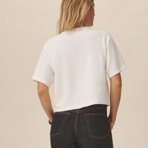 Cut from a heavyweight 310 GSM cotton, this slightly oversized, boxy crewneck tee has a straight hemline that hits right at your natural waist. Double-washed for a soft, smooth texture and consistent fit.
