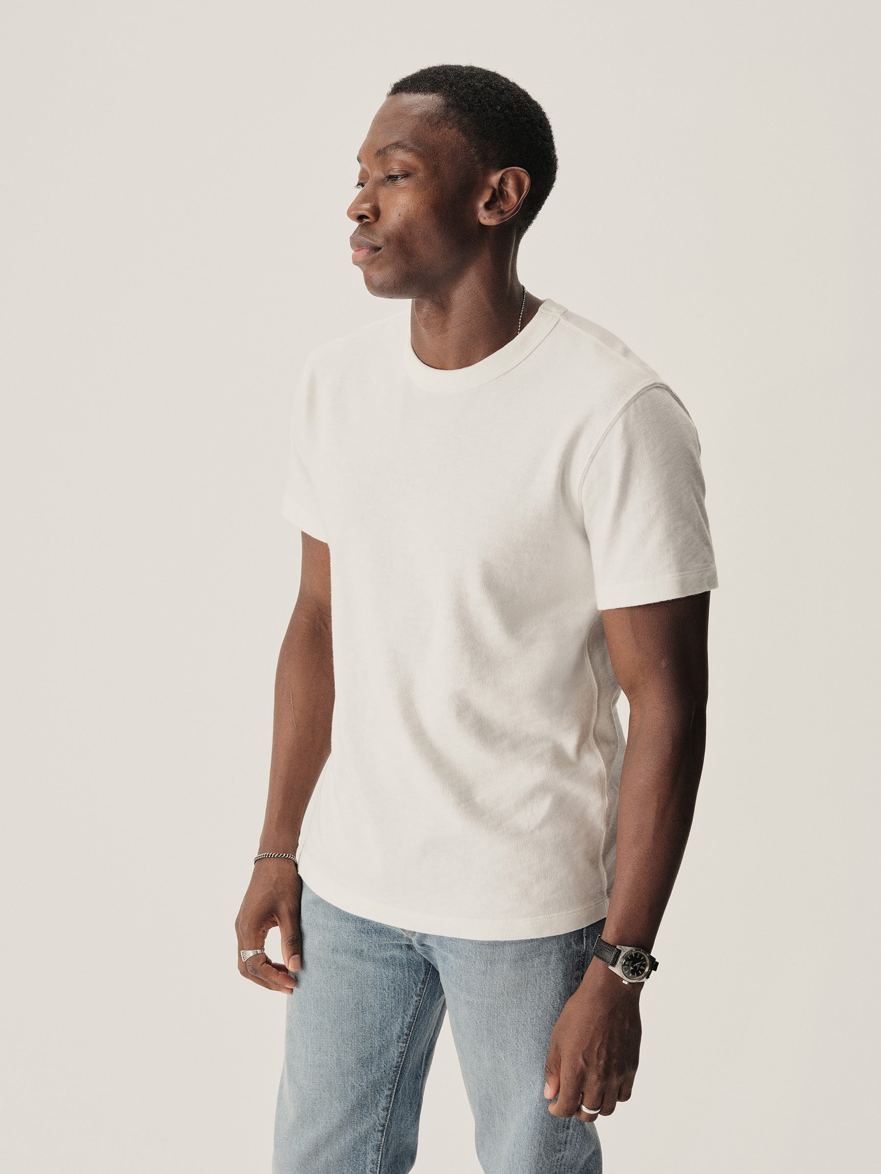 Our full-cut Field Spec Tee, built with hard-wearing, rugby-weight cotton and washed for a soft, lived-in texture.