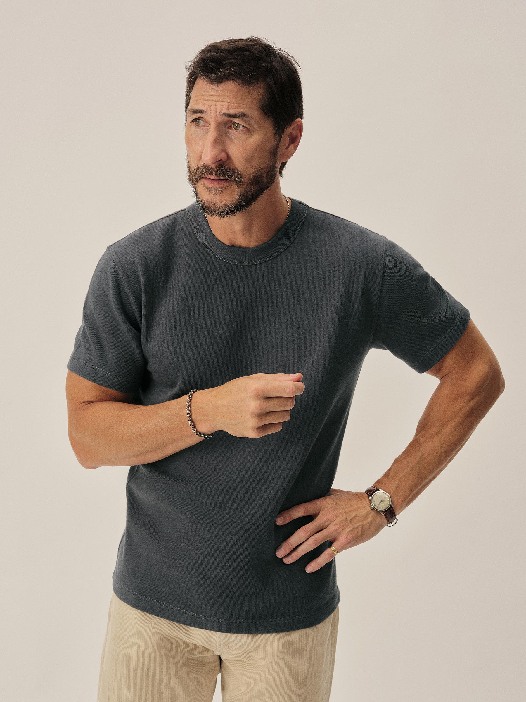 Our full-cut Field Spec Tee, built with hard-wearing, rugby-weight cotton and washed for a soft, lived-in texture.