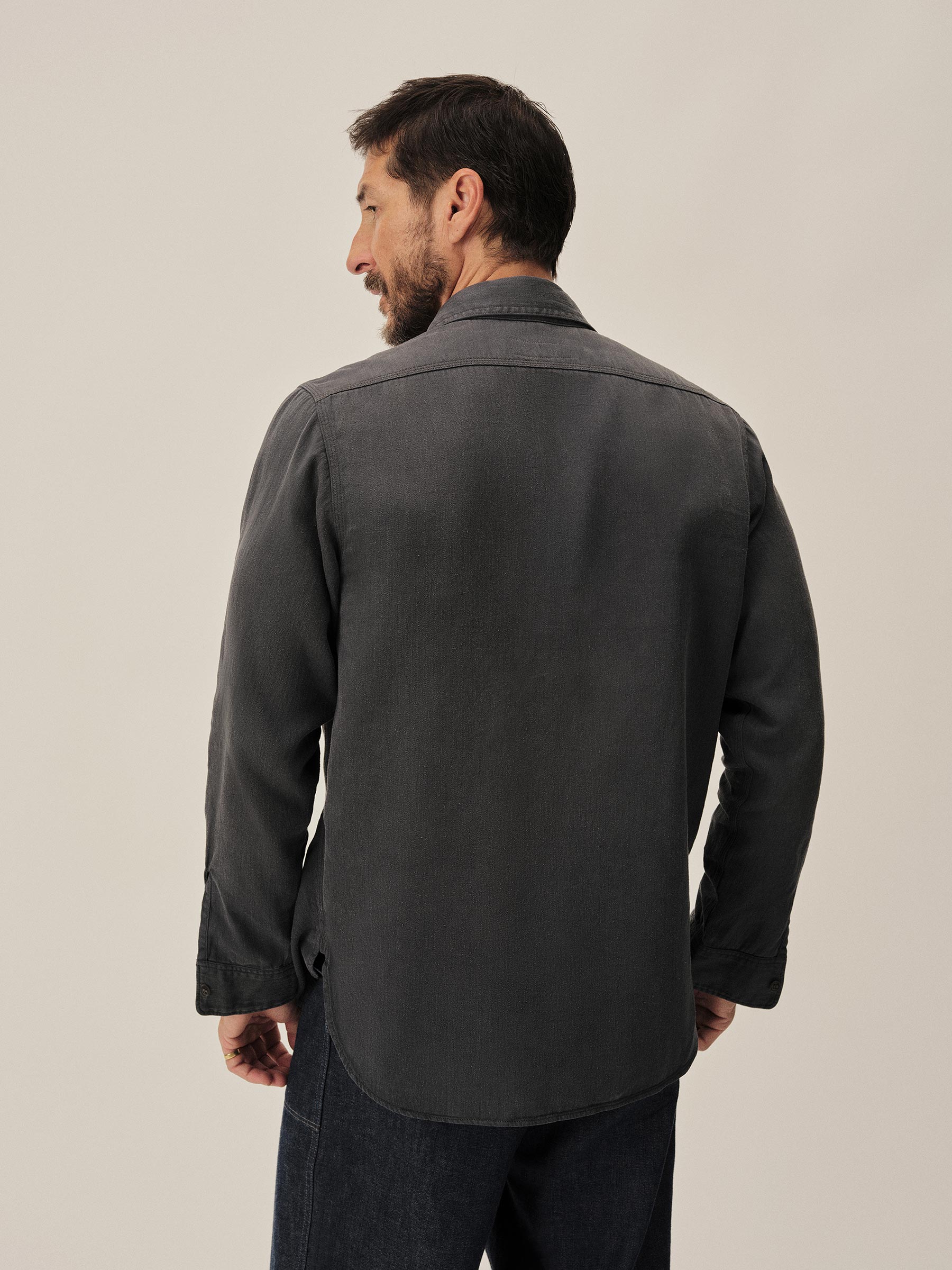 Born from the hardworking spirit of 1940s work shirts, the Soft Pack features a “cigarette pocket” at the chest and a narrow under-placket. Cut from a midweight, garment-dyed cotton/hemp HBT, and finished with a sun-fade effect, this shirt carries the weight of time.