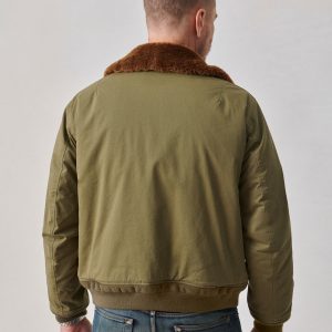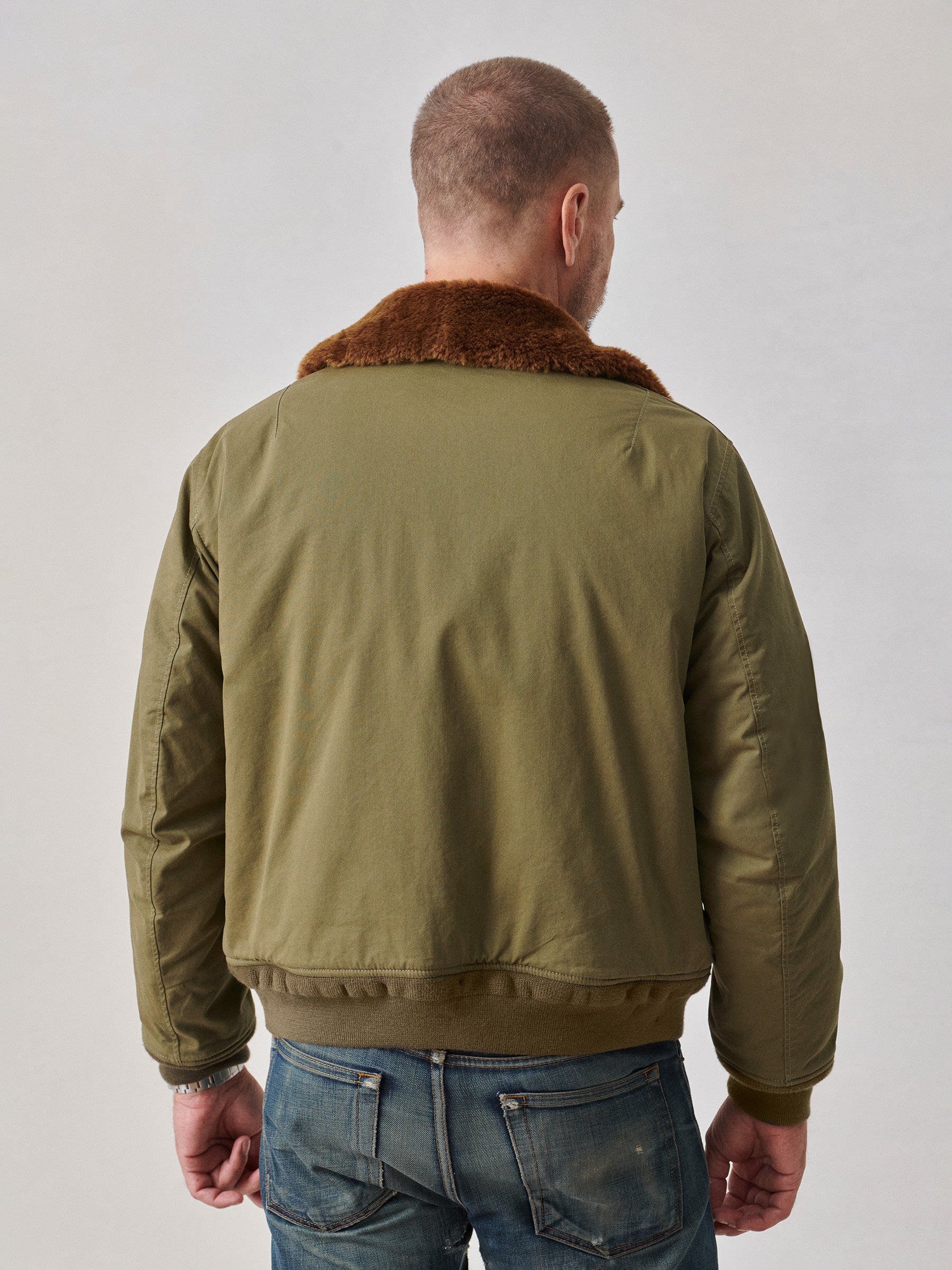 In 1944, the B-15 jacket became standard issue for the USAAF. We’ve brought it into the 21st century with a premium weather cloth we developed with Olmetex in Italy, blending a premium finish with all-weather performance. Filled with PrimaLoft insulation, it’s finished with a shearling collar, corozo-buttoned throat latch, enamel-coated snap front pockets, interior welt pocket, die-cast zip front closure, and rib cuff and hem.