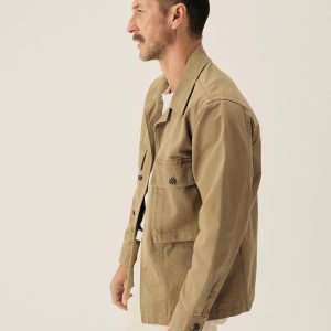 Our homage to WW2-era military style fatigues, cut in a true-to-original relaxed fit designed for range of motion with room to layer underneath. This lightly structured 9.4 oz.cotton twill has a herringbone weave and has been garment washed for a lived-in feel. Features two large bellows front pockets, a back yoke panel for mobility, felled seams, button-front closure, single-button cuffs, and 13-star tack buttons — all inspired by the original WW2 model.