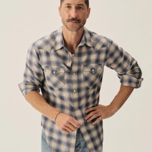 In the spirit of the ol’ Palomino, a classic fit western style shirt made from a springweight blend of cotton and wool, ideal for warm climates. The shirt has all the cowboy details like pearl snaps, a classic pointed yoke, five point pockets with pointed pocket flaps.