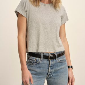 Boxy short sleeve crewneck tee with a straight hem. Cut from 120 GSM Supima cotton. Constructed with rib neck binding and double-needle cover-stitching at the hem. Garment washed for a lived-in feel.