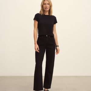 Boxy short sleeve crewneck tee with a straight hem. Cut from 120 GSM Supima cotton. Constructed with rib neck binding and double-needle cover-stitching at the hem. Garment washed for a lived-in feel.
