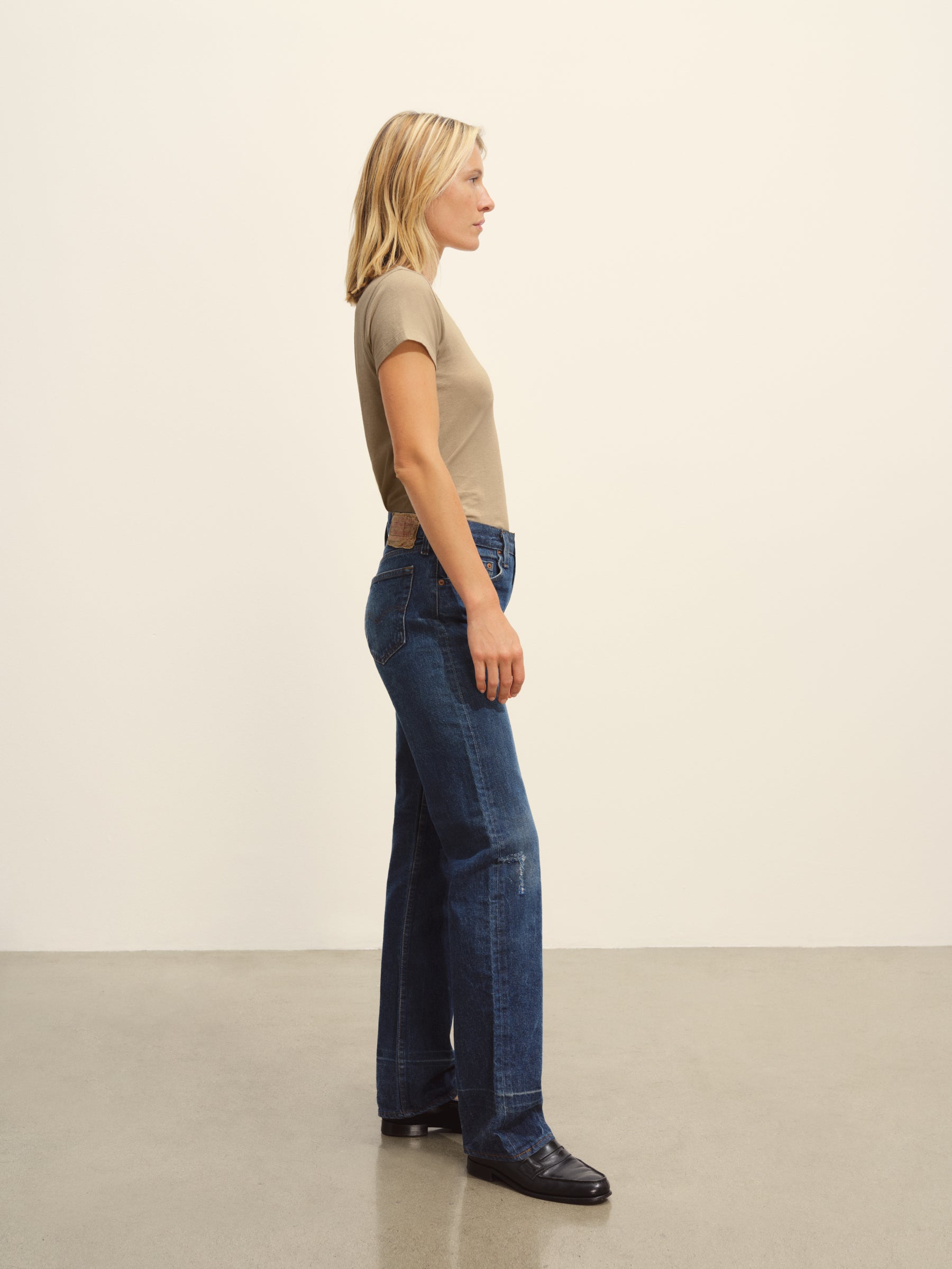 Slim fit short sleeve crewneck tee with a straight hem in 120 GSM jersey, knit from long-staple Supima cotton. Constructed with a durable rib stitch collar and double-needle cover stitch hem. Garment washed with softener for a lived-in feel.