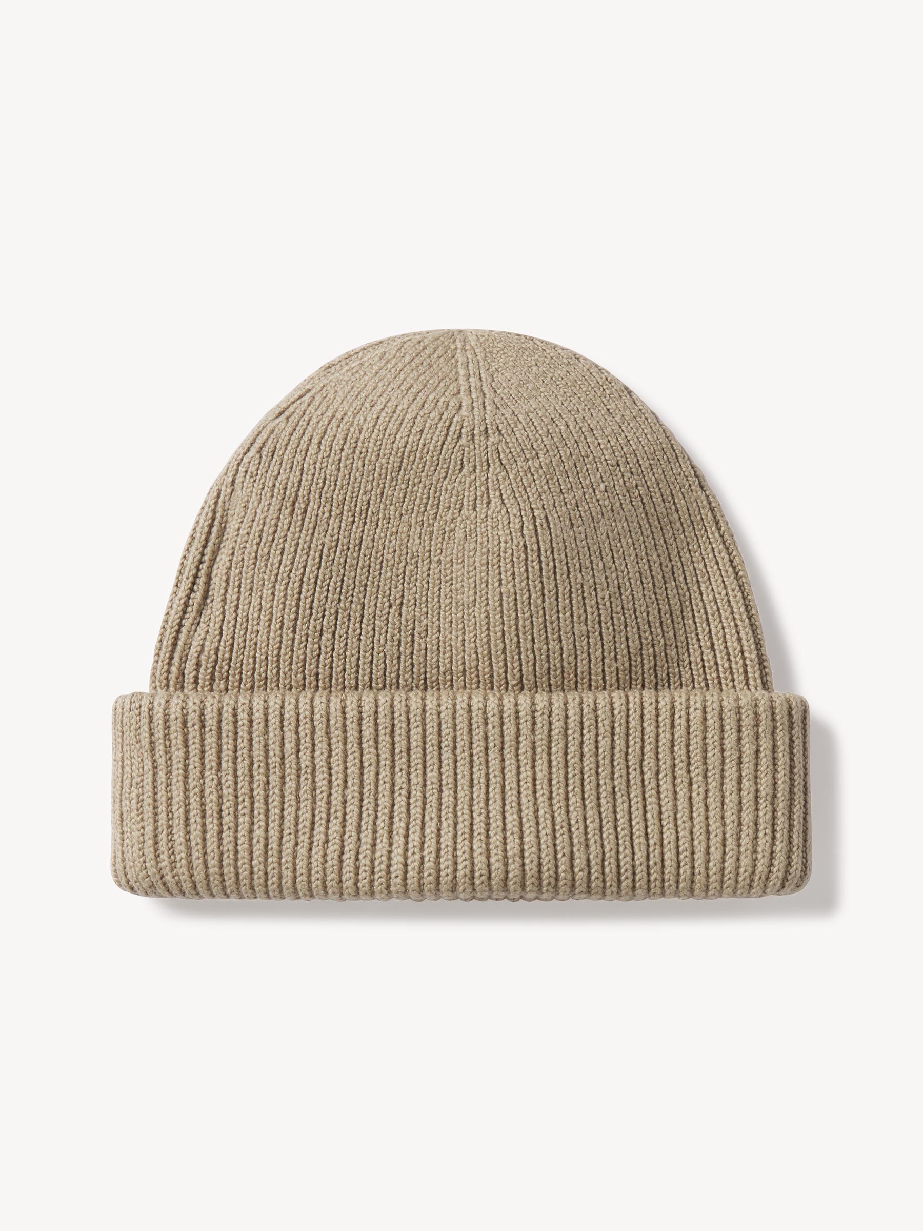 Classic fit double layer beanie in a 9 gauge rib knit from homespun cotton with slub texture. Constructed with hand-linked seams for durability. One size fits all.