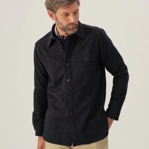 Classic fit button down collar shirt cut from a featherlight 3 oz cotton poplin. Details include mother of pearl buttons, a single scallop pocket, and a box pleat at the back. Constructed with clean finished seams. Garment washed for a lived-in look and feel.