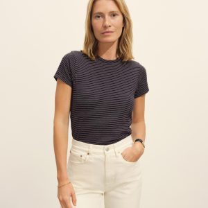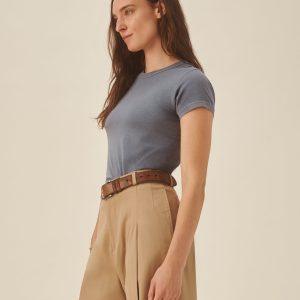 Classic fit short sleeve crewneck tee with a straight hem, cut from 125 GSM cotton with light slub texture. Constructed with self neck binding and ladder stitch detailing at the hems. Garment dyed and washed with softener for a lived in feel.