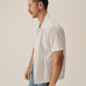 A light, airy seersucker camp shirt cut in a boxy fit with a straight hem. Features a one pocket construction and Mother of Pearl buttons.