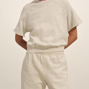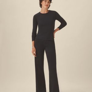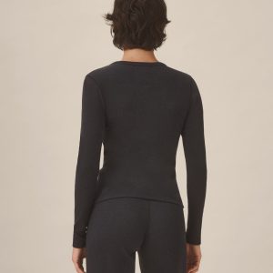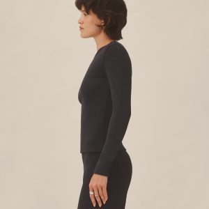 Slim fit ribbed long sleeve tee cut from 295 GSM stretch cotton that holds its shape. 2×2 rib structure—two rows of rib stitch, two rows of jersey stitch—is offset by contrast 1×1 rib at the neck. Constructed with coverstitching throughout and flatlock stitching at the side seams. Garment washed for a lived-in feel.