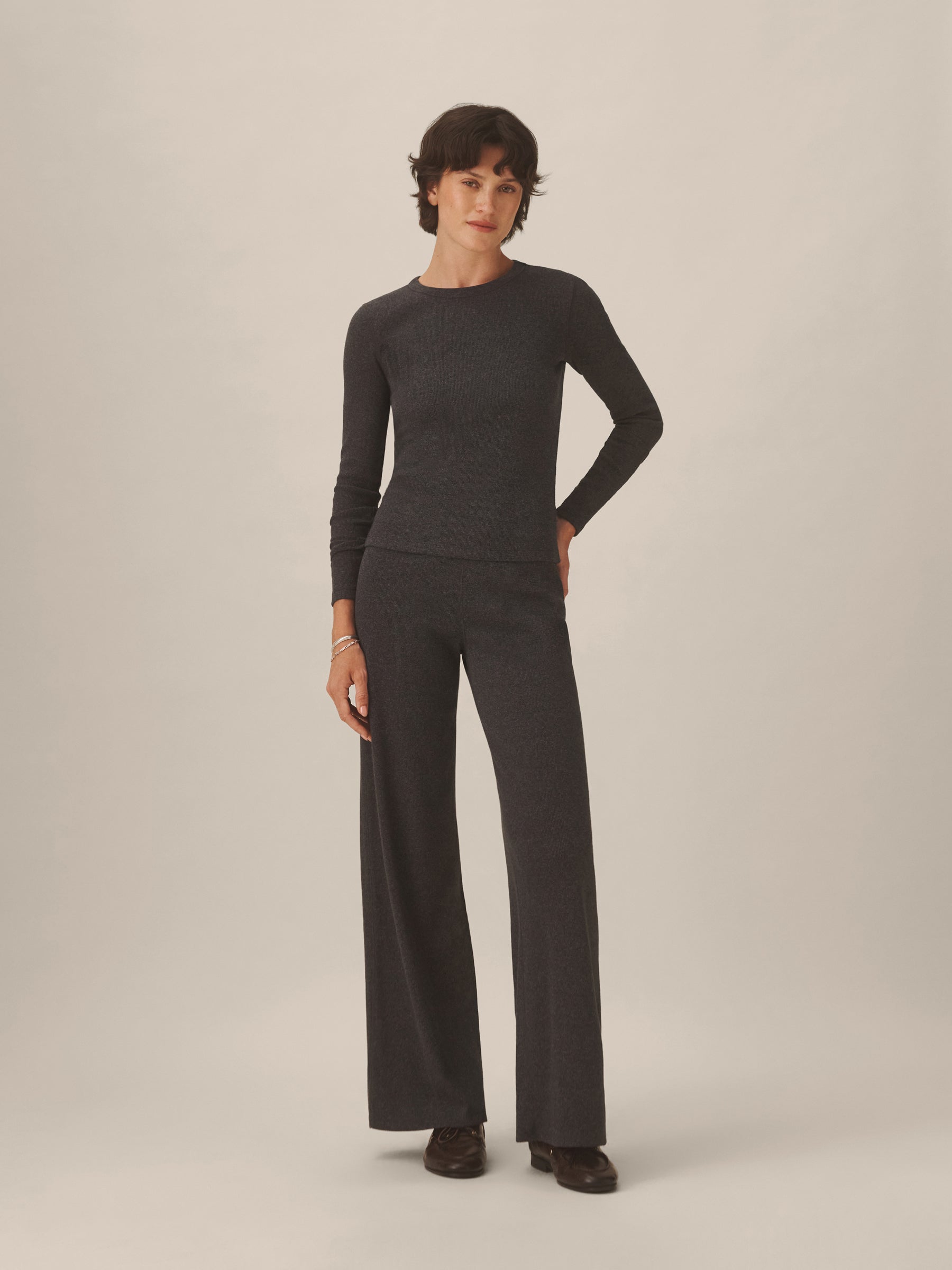 Slim fit ribbed long sleeve tee cut from 295 GSM stretch cotton that holds its shape. 2×2 rib structure—two rows of rib stitch, two rows of jersey stitch—is offset by contrast 1×1 rib at the neck. Constructed with coverstitching throughout and flatlock stitching at the side seams. Garment washed for a lived-in feel.