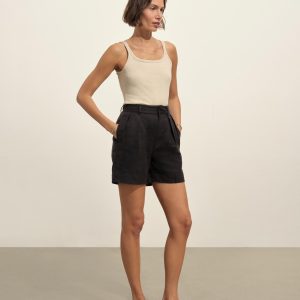 Slim fit ribbed scoop neck tank cut from 295 GSM stretch cotton that holds its shape. 2×2 rib structure—two rows of rib stitch, two rows of jersey stitch—is offset by contrast 1×1 rib at the neck. Constructed with coverstitching throughout and flatlock stitching at the side seams. Garment washed for a lived-in feel.