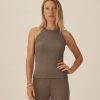 Slim fit, vintage military-inspired tank cut from 295 GSM stretch cotton that holds its shape. 2×2 rib structure—two rows of rib stitch, two rows of jersey stitch—is offset by contrast 1×1 ribbing at the neck. Features a hidden thread chain and snap at each shoulder to hold bra straps in place. Constructed with flatlock stitching throughout and double needle coverstitching at the hem. Garment washed for a lived-in feel.