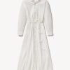 Slim fit tank dress that falls straight from the hip to hit below the calf in a 54″ length. An easy silhouette in 295 GSM stretch cotton that holds its shape. 2×2 rib structure—two rows of rib stitch, two rows of jersey stitch—is offset by contrast 1×1 ribbing at the neck. Features a hidden thread chain and snap at each shoulder to hold bra straps in place. Constructed with flatlock stitching throughout and double needle coverstitching at the hem. Garment washed for a lived-in feel.