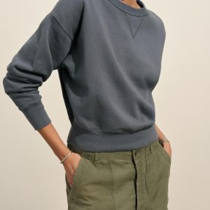 Straight leg, high-waisted 2×2 rib knit pant cut from 295 GSM stretch cotton that holds it shape. Fits comfortably at the waist with a wide elastic waistband with a full length inseam measuring 31 3/4”. Garment washed for a lived-in feel.