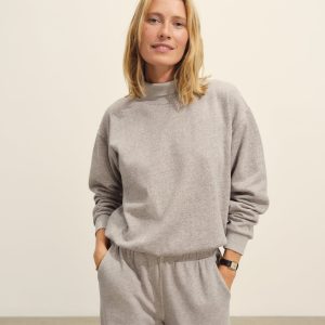 Straight leg, high-waisted 2×2 rib knit pant cut from 295 GSM stretch cotton that holds it shape. Fits comfortably at the waist with a wide elastic waistband with a full length inseam measuring 31 3/4”. Garment washed for a lived-in feel.