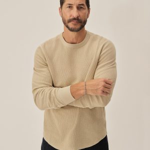 Classic fit thermal long sleeve crewneck tee with our signature curved hem. This 250 GSM French rib cotton double knit features a waffle-knit face and a smooth jersey back. Constructed with ribbed cuffs and flat-lock stitching throughout for improved comfort and durability. Garment washed with enzymes and softener for a lived-in feel.
