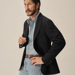 An Ivy-inspired American blazer crafted from a blend of wool and cashmere. Designed with a 3-roll-2 button stance, open patch pockets, and a functional sleeve vent with two horn buttons. Cut with a center back seam and left unlined through the body for a relaxed, unstructured feel, while the sleeves are fully lined in viscose for smooth layering.