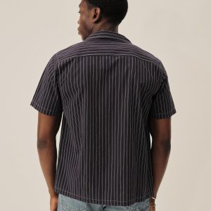 Classic fit short sleeve camp collar button up cut from a mercerized 4 oz. washed cotton. Features a four-button placket with mother of pearl buttons, a single spade chest pocket, and a loop and button closure at the neck. Constructed with clean finished seams. Garment washed with enzymes for a lived-in feel.
