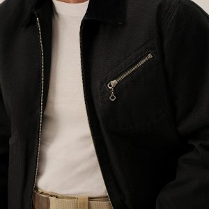 Based on a 1940s work jacket, the Wyatt is cut from Japan-milled jaspe twill, with twisted yarns woven for a subtle heathered finish. The body is lined in cotton-wool herringbone for warmth, while the sleeves have a smooth brushed satin lining for easy layering. A corduroy top collar and face cuffs, Japanese Universal zipper at the chest pocket, stitched-through welt hand pockets, and reproduction corozo buttons complete the design, along with workwear-style cuffs and adjustable metal side cinches at the back.